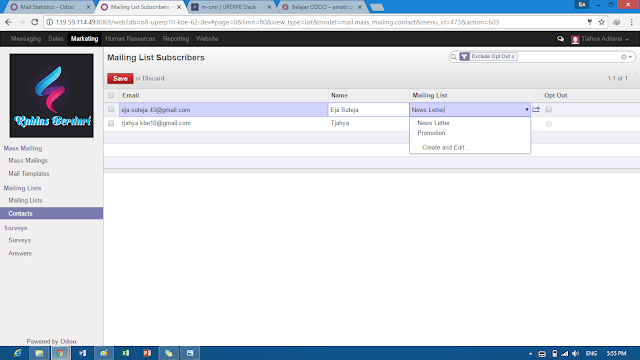 1. Tulis daftar Mailing List baru dalam Odoo.