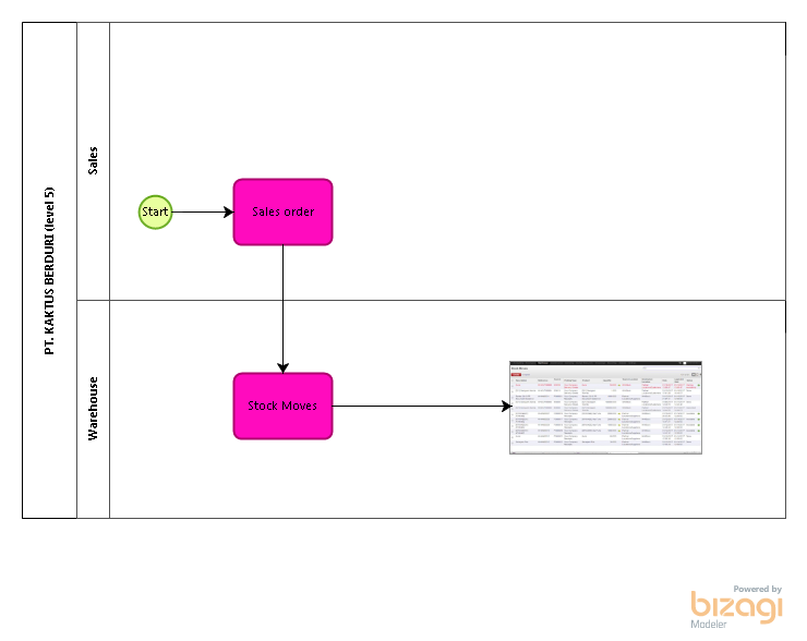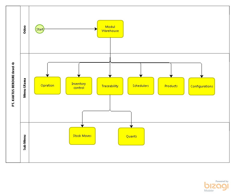 Langsung saja berikut adalah beberapa levels dari bisnis proses modul warehouse.