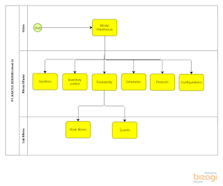 Dalam postingan saya kali ini saya akan membahas untuk tugas UTS, yaitu membuat bisnis proses untuk modul warehouse dengan aplikasi bizagi. Dalam bisnis proses ini di bagi menjadi 5 levels..